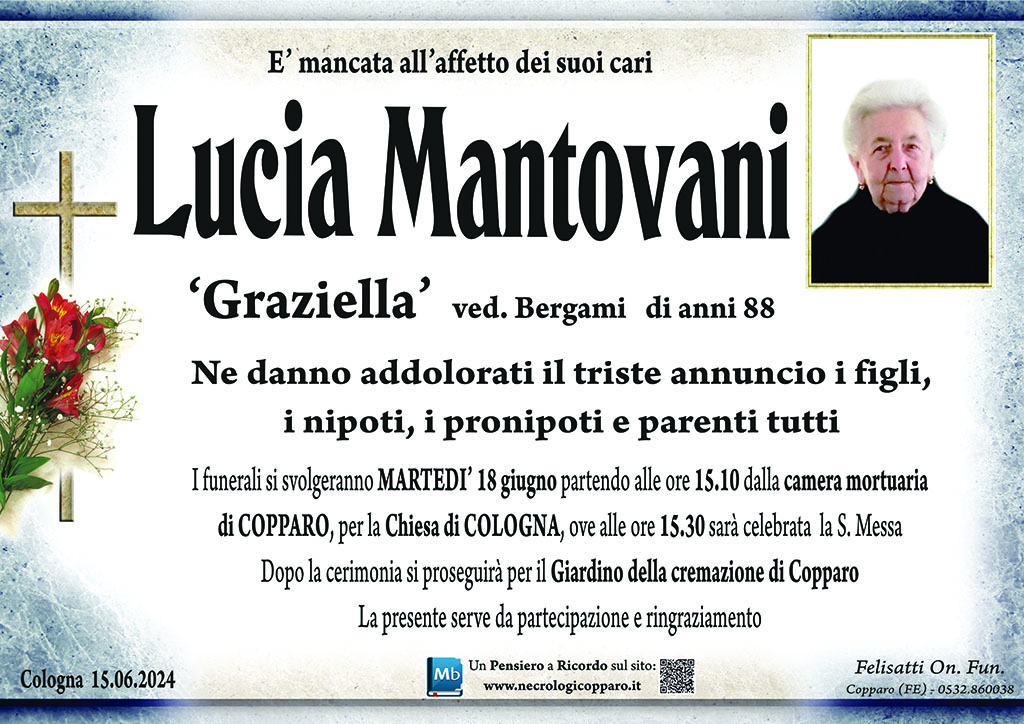 I familiari ringraziano anticipatamente tutti coloro che parteciperanno alla cerimonia funebre e tutti coloro che scriveranno con affetto un Pensiero di Ricordo.