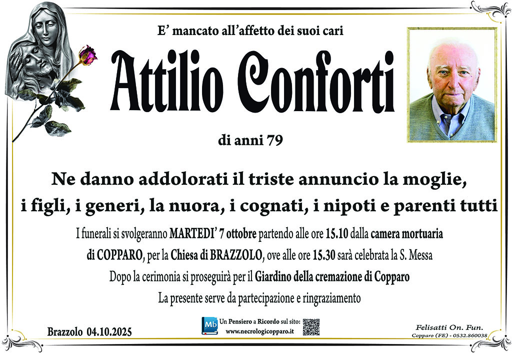 I familiari ringraziano anticipatamente tutti coloro che parteciperanno alla cerimonia funebre
