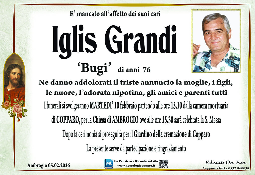 I familiari ringraziano anticipatamente tutti coloro che parteciperanno alla cerimonia funebre e tutti coloro che scriveranno con affetto un Pensiero di Ricordo.